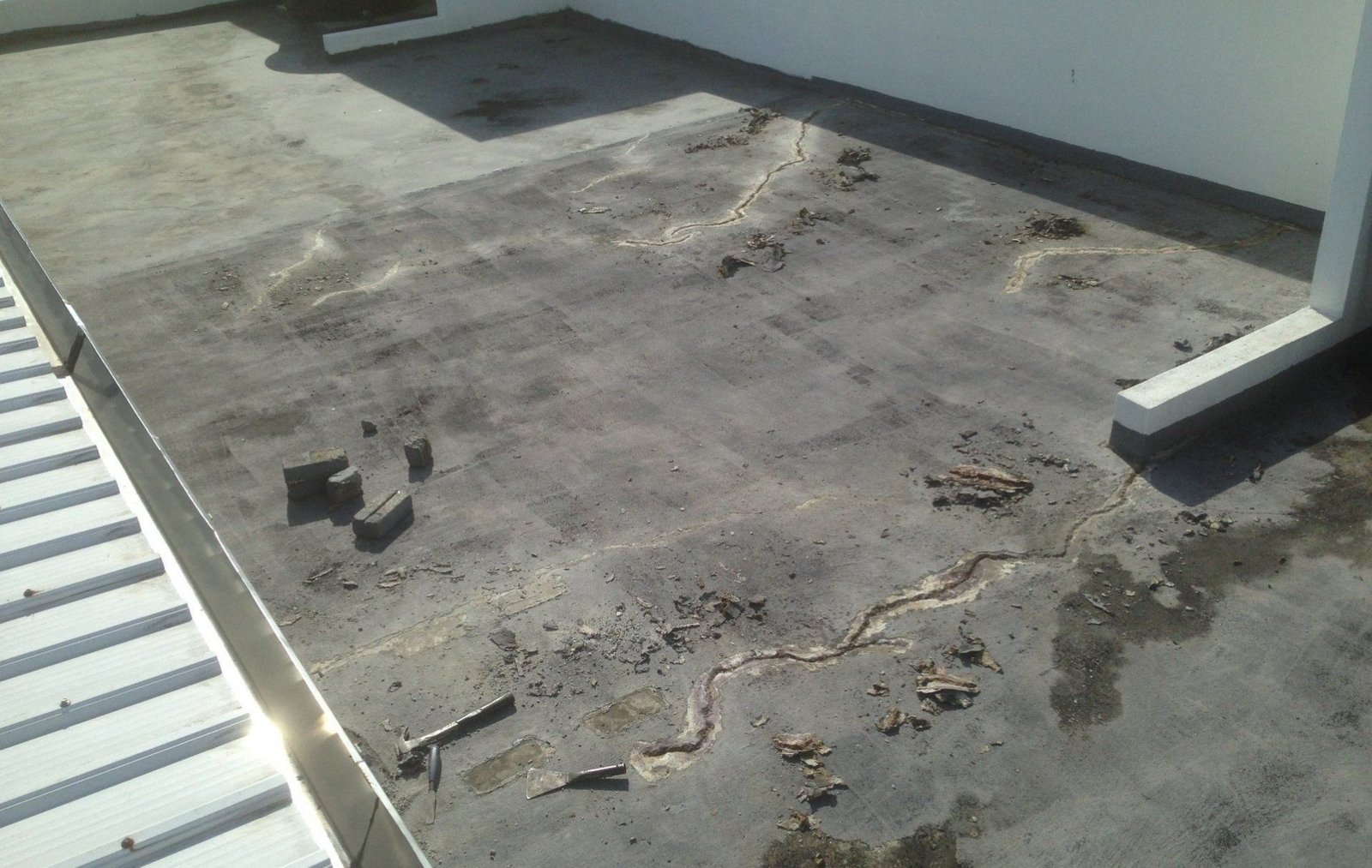 Waterproofing requires more than just painting over a crack. It requires proper surface preparation and the right chemical application. We tackle the most common waterproofing failure areas: concrete slabs (RC flat roofs), open balconies, and internal wet areas like bathrooms.